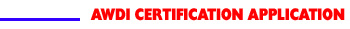In order to apply for AWDI Certification Materials on-line, you must fill in the information below. Fields in RED Required. Once it is submitted, we will mail the materials (Manual, Standards and Test) to you.